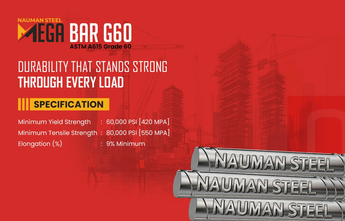NS Mega Bar G60 is designed to provide dependable reinforcement for residential, commercial, and infrastructure construction. It offers high tensile strength and durability, making it suitable for structural elements such as slabs, beams, columns, and foundations. Its consistent performance makes it an ideal choice for everyday structural applications where reliability is essential.