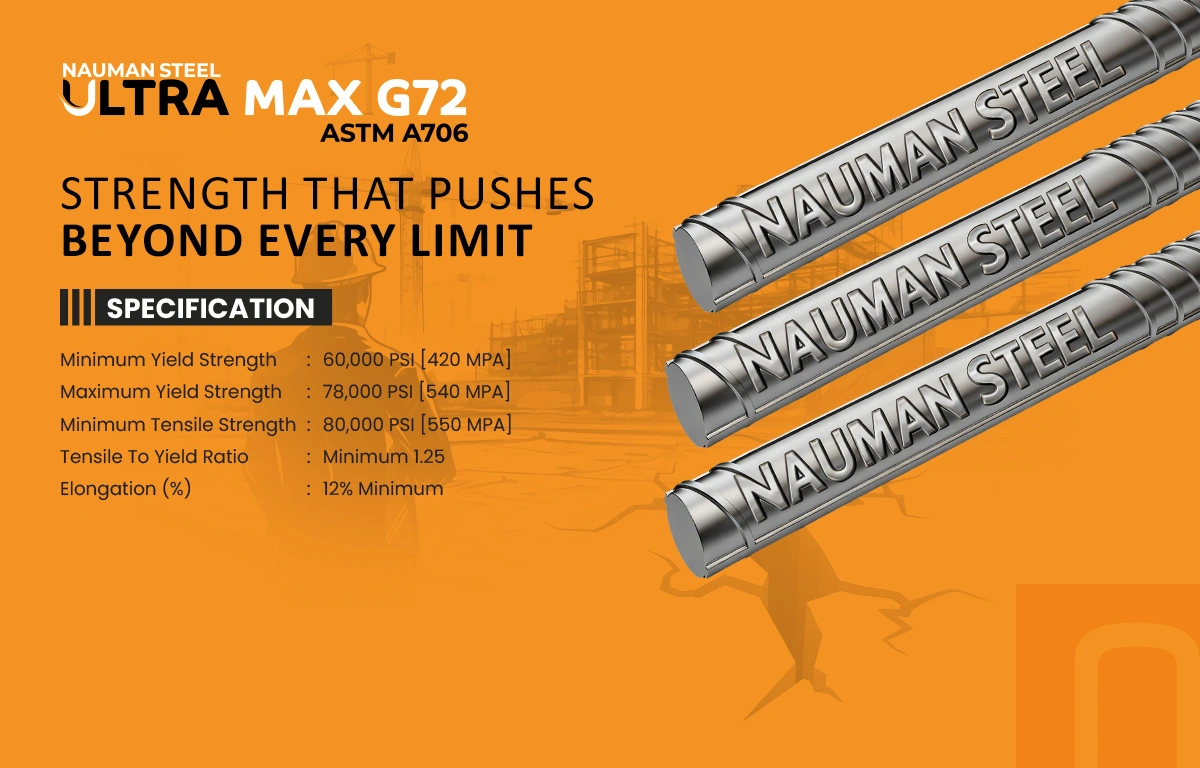 NS Ultra Max G72 is engineered for enhanced weldability and superior performance in seismic zones. Its improved ductility and flexibility allow structures to better absorb stress and movement during seismic activity. This product is especially suited for earthquake-resistant structures, high-stress engineering projects, and applications where structural resilience is critical